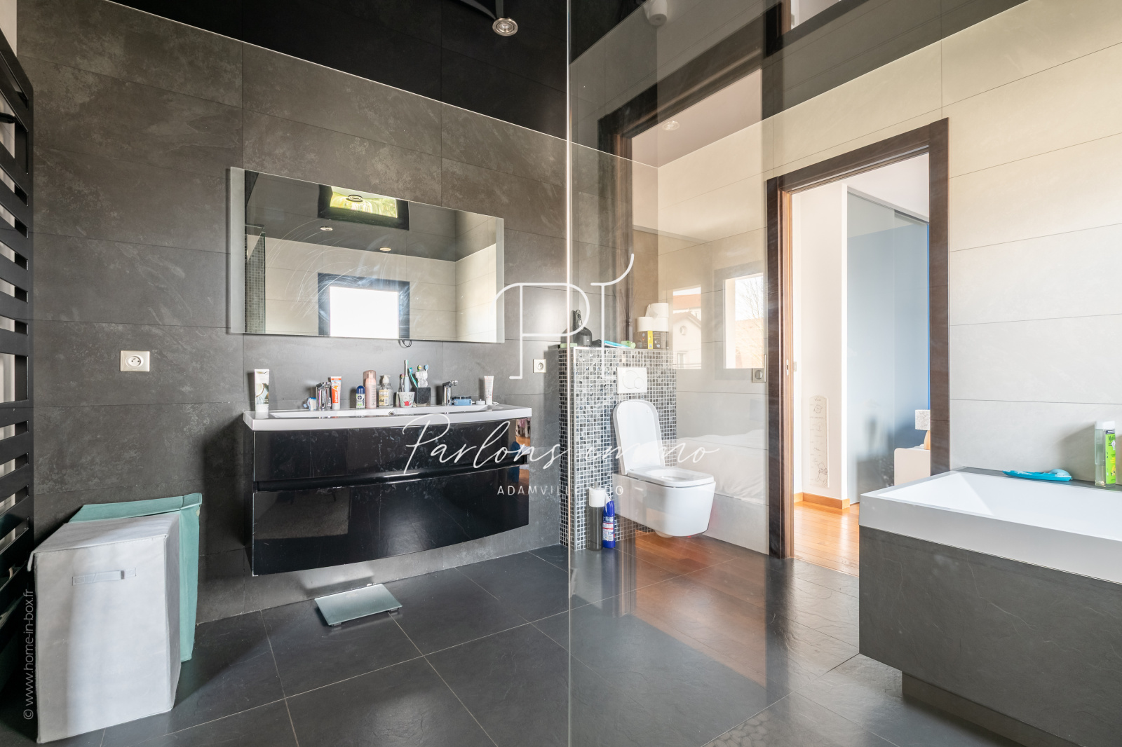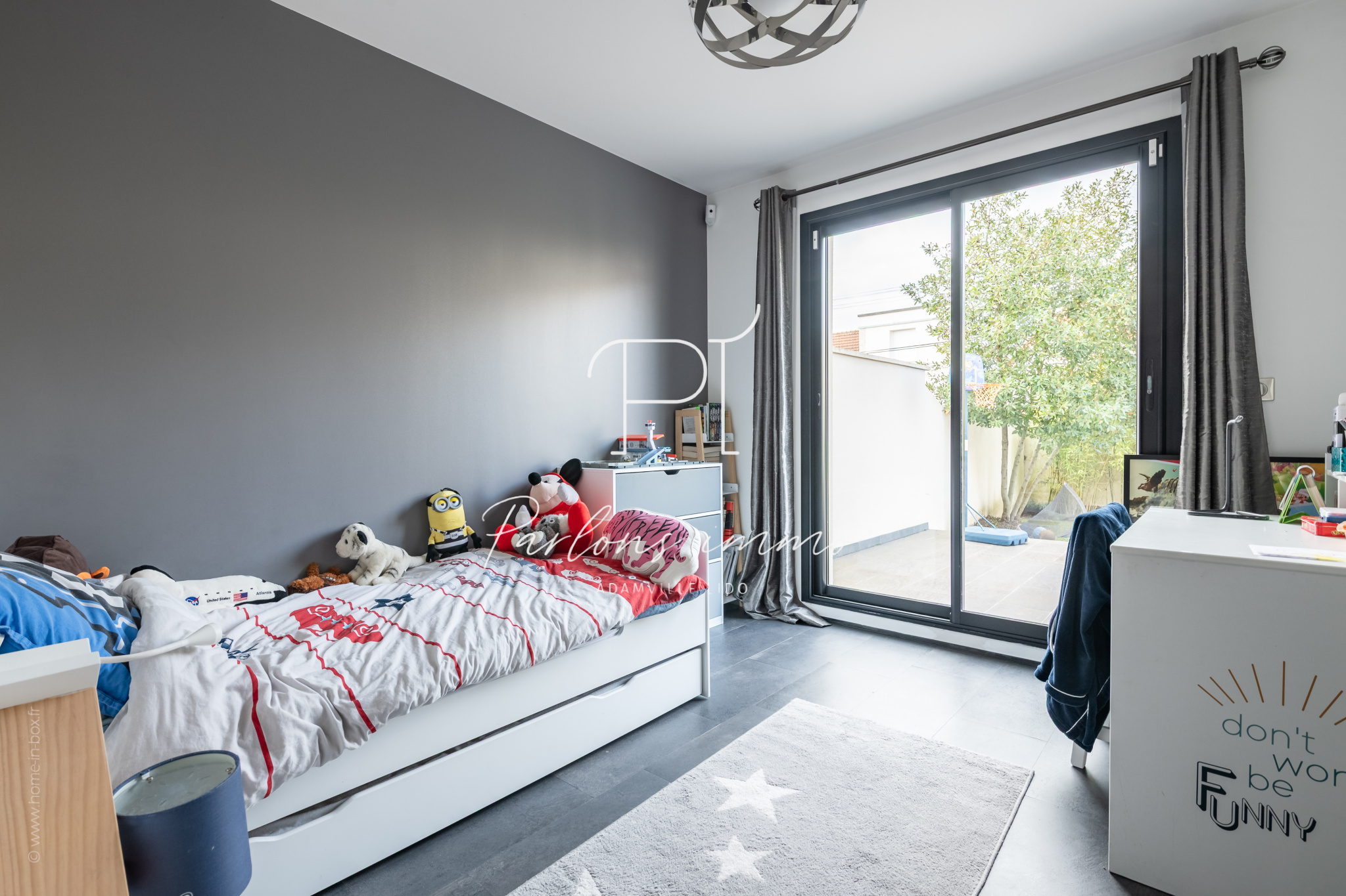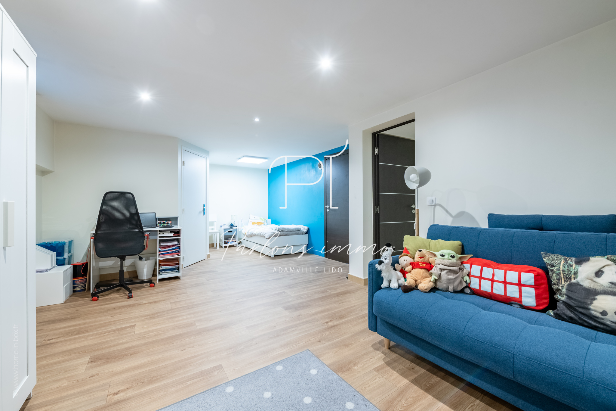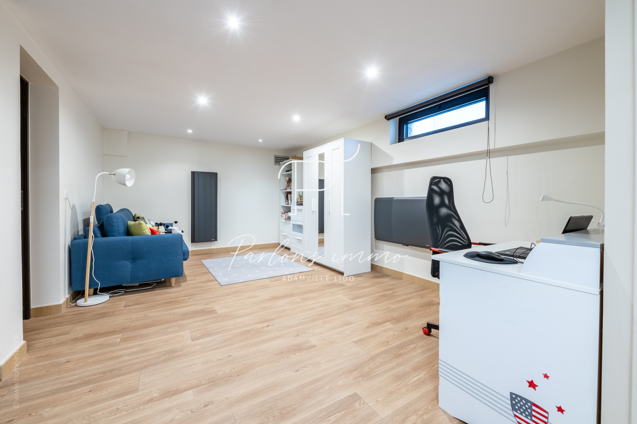 En rez-de-jardin, une grande quatrième chambre de 29,18 m² avec salle d’eau et WC offre un espace indépendant, parfait pour un adolescent, un espace invités ou une salle de jeux/ cinéma. Le sous-sol comprend également une buanderie, des espaces de rangement et un accès direct au garage.