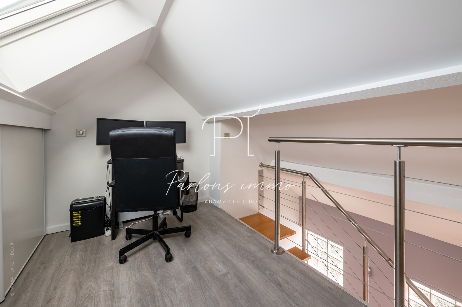 À l’étage, deux chambres confortables se partagent une salle de bains communicante. Un bureau en mezzanine et un second WC complètent ce niveau.