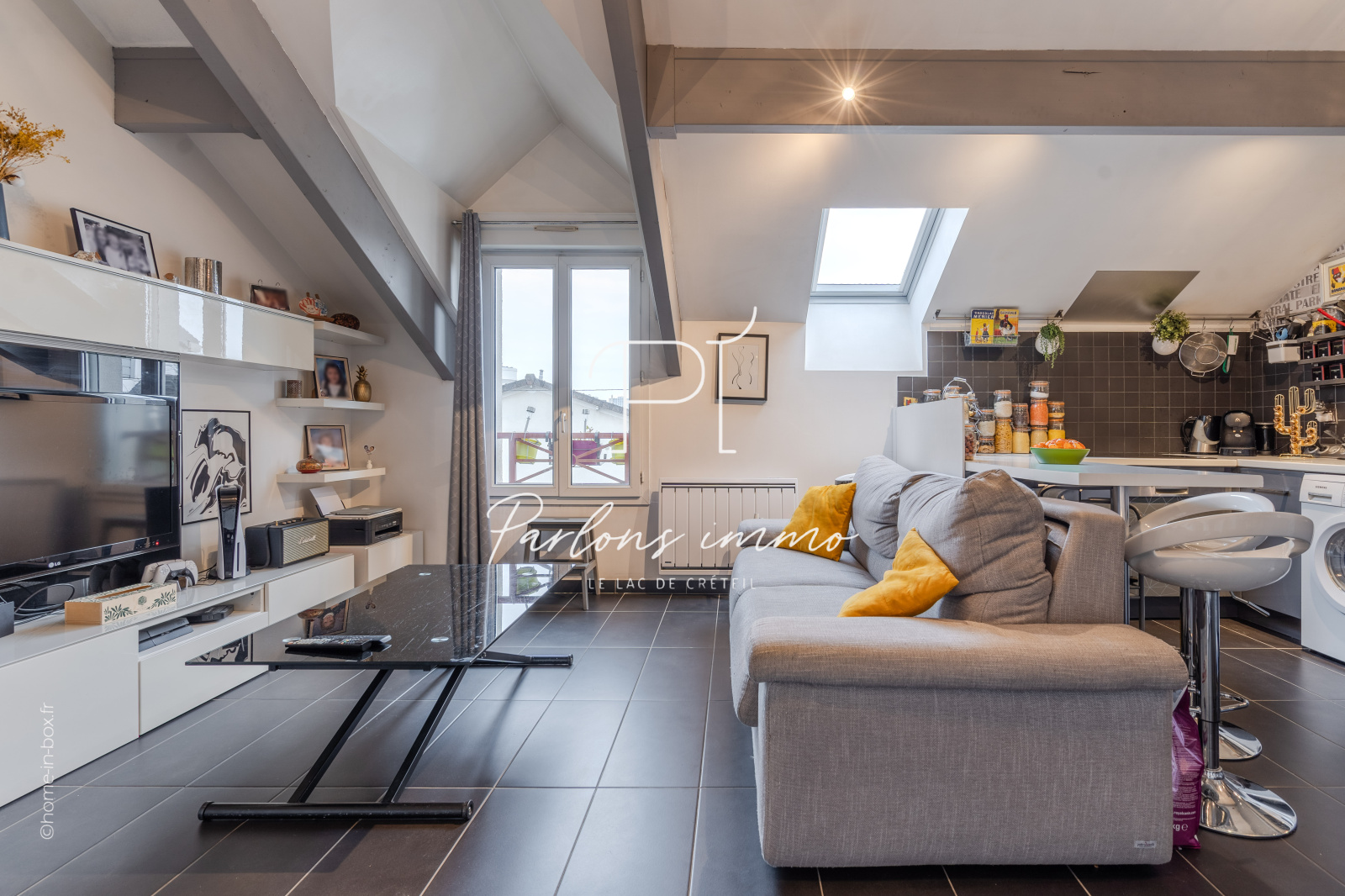 Charmant 2 pièces en dernier étage de 42,29 m² (48,28 m² au sol), niché dans une résidence verdoyante de 1994 avec un magnifique jardin commun arboré. L'appartement offre une belle pièce de vie de 26,64 m² avec cuisine ouverte équipée. L'espace nuit se compose d'une chambre confortable. Les aménagements ont été pensés avec soin : une entrée avec placard, un dressing, une salle d'eau moderne et des WC séparés. Le RER E "Villiers-sur-Marne - Le Plessis-Trévise" se situe à 15 minutes à pieds.